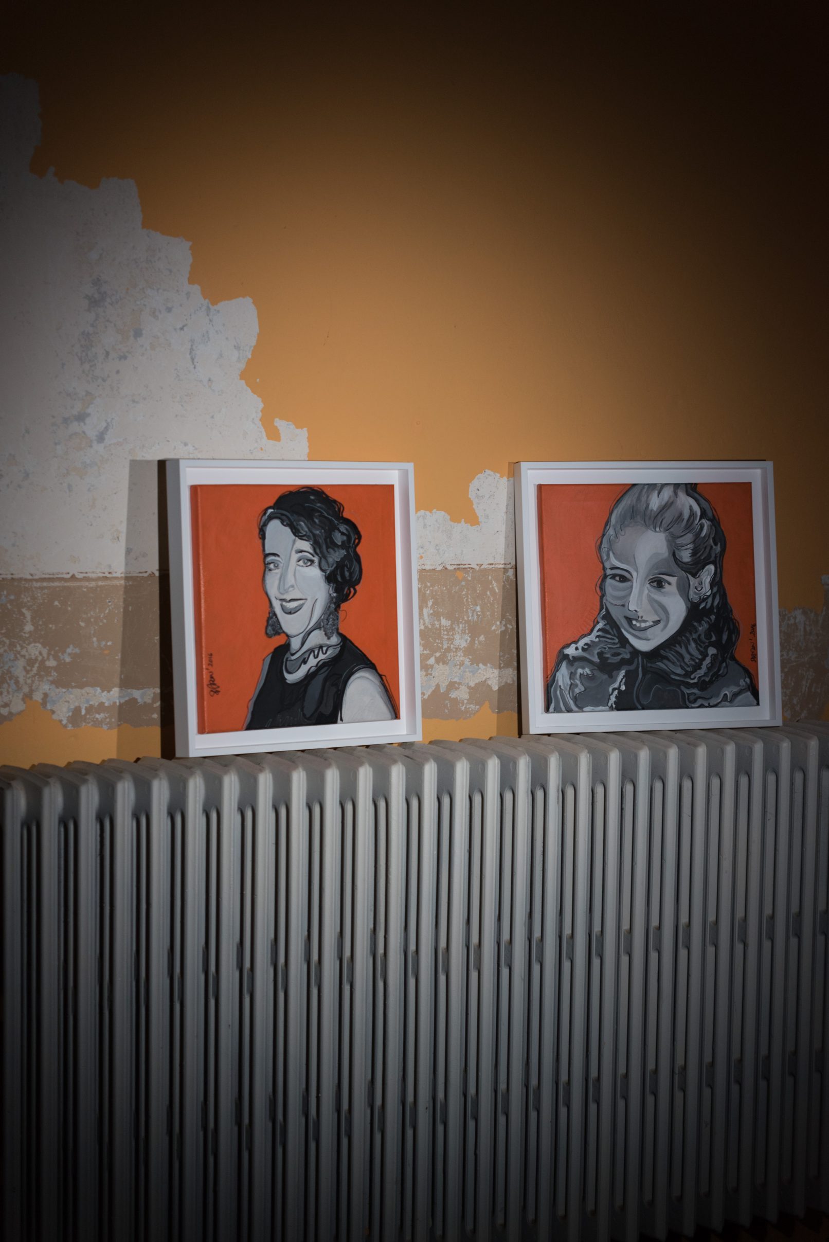 Chaque couleur de fond est un remerciement à la vie et à toutes les couleurs qu’elle m’offre ; ces couleurs sont issues d’un long travail de mélanges de pigments, de peintures primaires et autres coloris pour arriver à des teintes éclatantes, mettant en avant les reliefs des visages travaillés en noir et blanc.