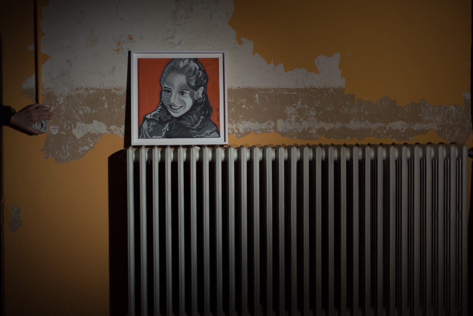 Jede Hintergrundfarbe ist ein Dankeschön an das Leben und an alle Farben, die es mir bietet; diese Farben sind das Ergebnis einer langen Arbeit des Mischens von Pigmenten, Grundfarben und anderen Farben, um zu brillanten Schattierungen zu gelangen, die die Reliefs der in Schwarz und Weiß gearbeiteten Gesichter hervorheben. Das Fleisch wird durch diese sehr ausgeprägten flachen Bereiche sublimiert, glatt, fast geglättet, ohne jede Spur von Pinseln oder anderen Werkzeugen.