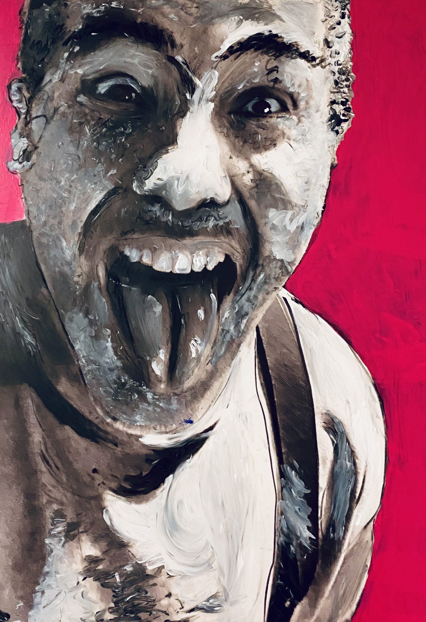Le cri est une illustration parfaite de l’univers de Paule Caron qui peint à la frontière du dessin et dessine aux frontières de la peinture, les cadrés décadrés apportant des mouvements en force, projetant le sujet ou l’incrustant au plus profond des fibres de la toile.